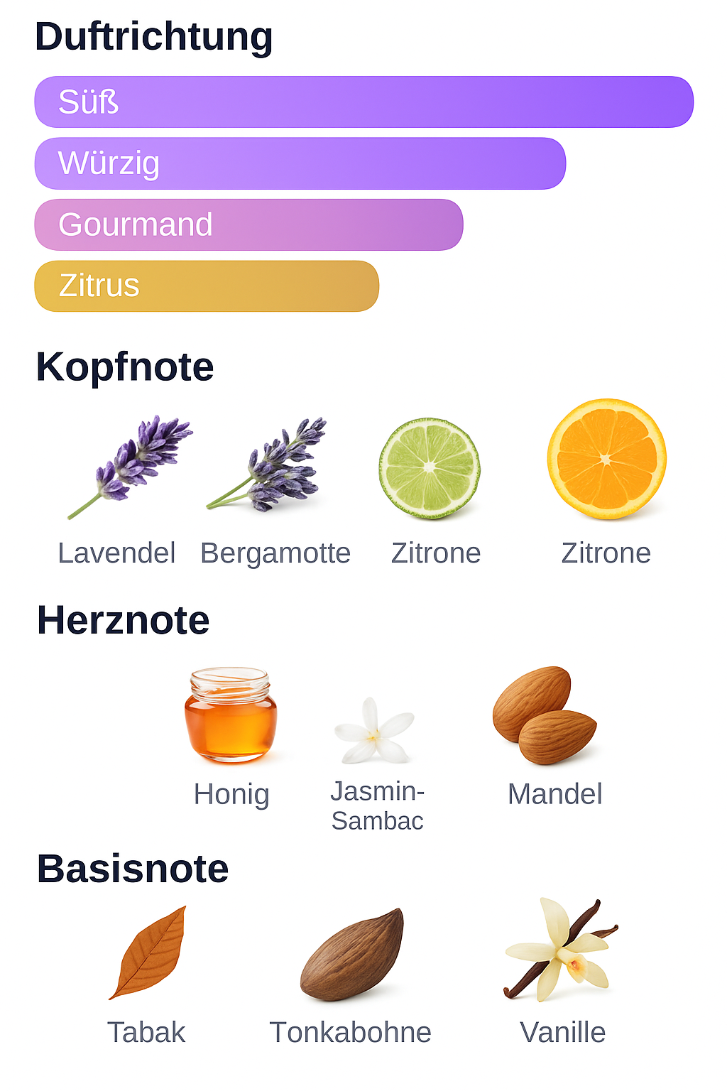 sich im Herzen mit goldenem Honig, würzigem Zimt und Lavendel entfaltet,